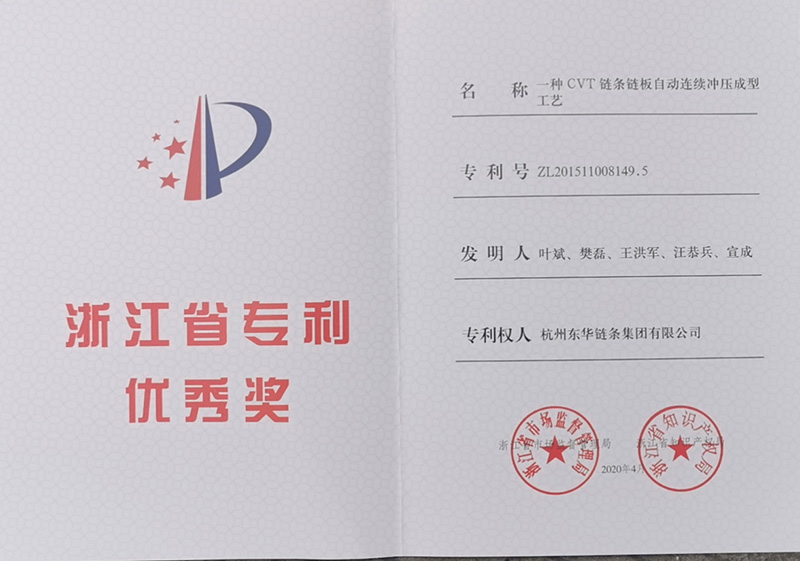 東華鏈條集團“一種CVT鏈條鏈板自動連續(xù)沖壓成型工藝”發(fā)明專利榮獲浙江省專利優(yōu)秀獎。本工藝投入使用后,在不增加人工、設(shè)備情況下,提升產(chǎn)品質(zhì)量,同時可省去傳統(tǒng)去毛刺工序,節(jié)約加工時間,提高效率,縮短產(chǎn)品加工流程,提高產(chǎn)品質(zhì)量的穩(wěn)定性。