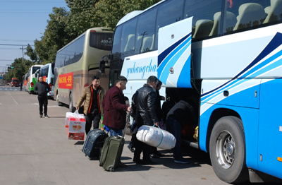 今年春節(jié)前夕,公司根據(jù)前期報名統(tǒng)計,共組織9輛大巴車送300多名員工返鄉(xiāng)過春節(jié),主要發(fā)往安徽、河南、湖南、江西、湖北等多個員工家鄉(xiāng)聚集省市。每輛車上安派了乘車長,定時定點向公司報平安。同時為職工準備了暈車藥、飲用水和喜慶的春聯(lián),為他們的返鄉(xiāng)之旅增添了不少溫暖。