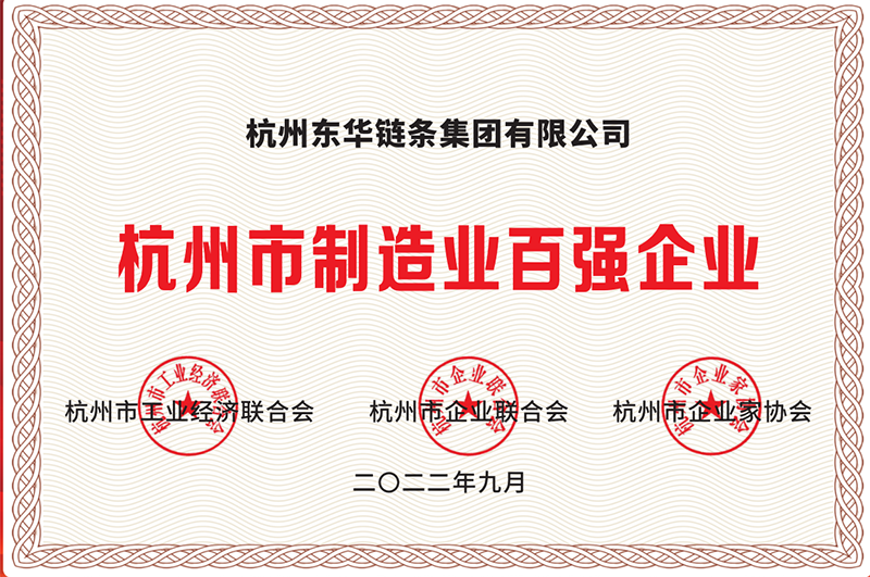 日前,杭州市工業經濟聯合會、企業聯合會、企業家協會在市民中心召開了2022杭州市百強企業榜單發布會。東華鏈條集團躋身杭州市制造業百強企業榜第44位。