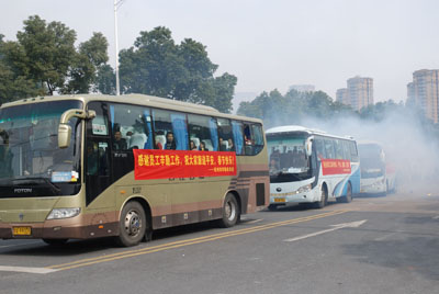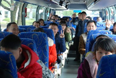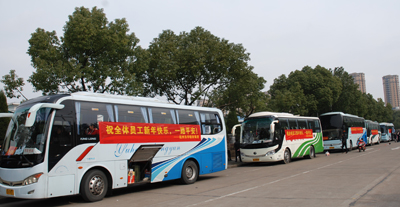 1月25日中午,公司南廠(chǎng)區(qū)大門(mén)外分外熱鬧,9部掛著祝福員工一路平安、新年快樂(lè)橫幅的大巴車(chē)一字排列,等待著送300余名員工回家過(guò)春節(jié),濃濃的節(jié)日氛圍掛在每個(gè)員工的臉上。