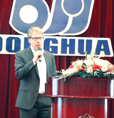 東華荷蘭公司總經(jīng)理Morskate就東華全球制造、品牌建設、銷售等進行了匯報和展望。